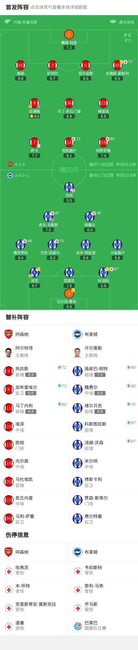 第71分钟,加布里埃尔、热苏斯登场,斯凯利、哲凯赖什下